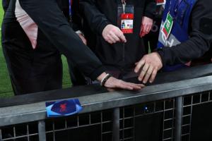 ESPN晒照,之后摄影师和利物浦工作人员对诺阿·朗受伤地点进行检查。